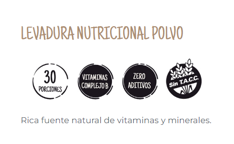 FUENTE DE VITAMINAS B2, ALTO CONTENIDO DE VITAMINA B1 Y B9, MAGNESIO, FOSFORO, POTASIO, HIERRO, CALCIO, ZINC.